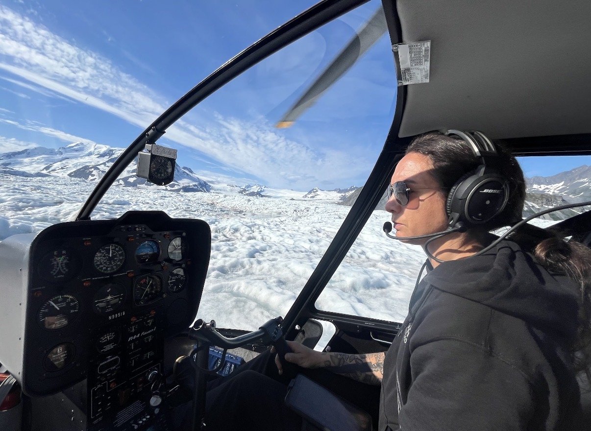 It wasn’t until she learned to fly paragliders and speed-wings in Montana, however, that she became enamored with aviation and decided to become a professional pilot. She completed her flight training at Jerry Trimble Helicopters in McMinnville, Oregon. She then worked as a CFII at both Jerry Trimble and Alyeska Helicopters before progressing to Part 135 tours. She is currently flying Bell 212s offshore and in the arctic for Hilcorp Alaska.