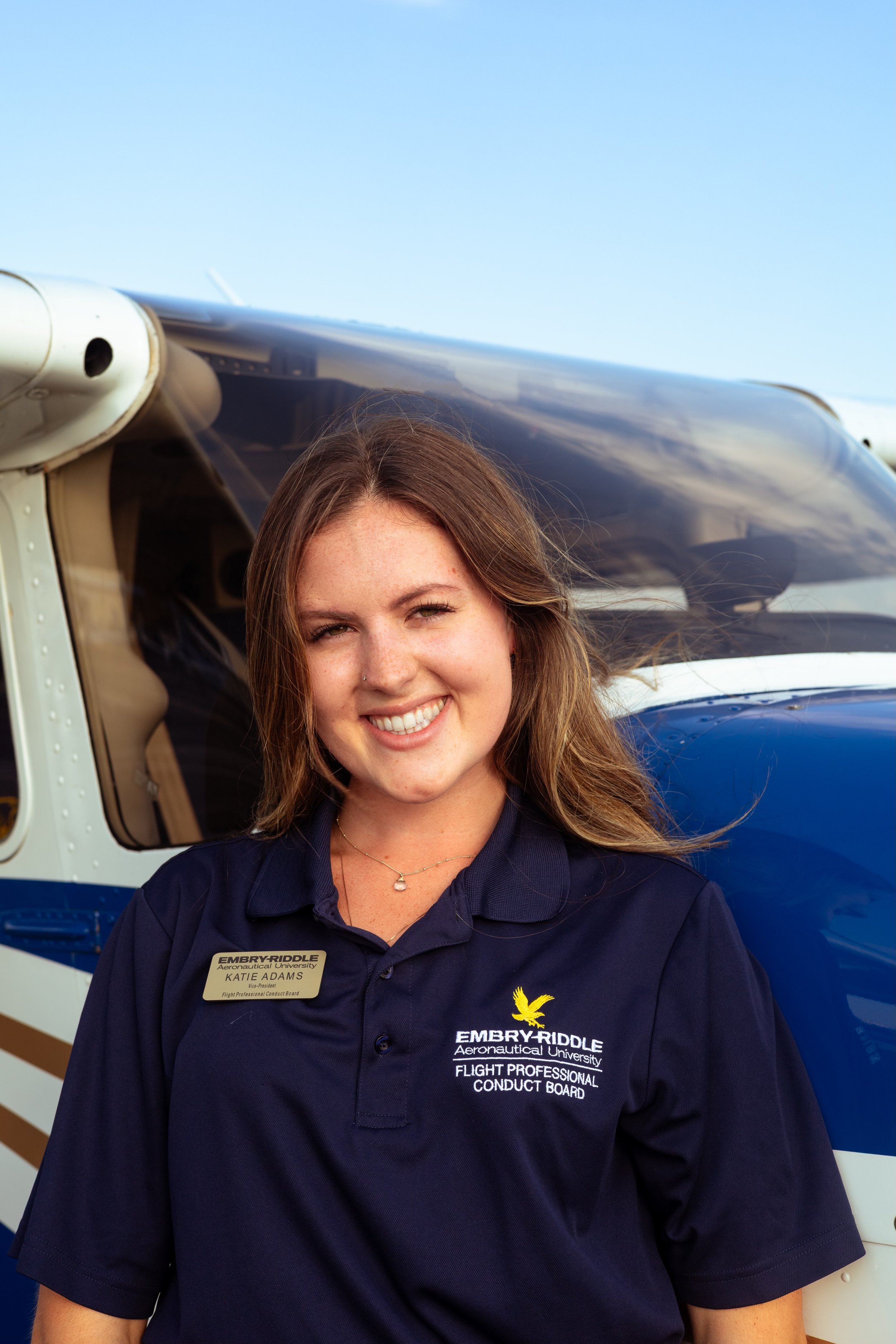 She is active in Alpha Omicron Alpha Aeronautical Honor Society and Tri-Sigma Sorority, participating in youth aviation events like EAA Young Eagle Day and Girls in Aviation Day, and supporting hospital fundraising efforts.